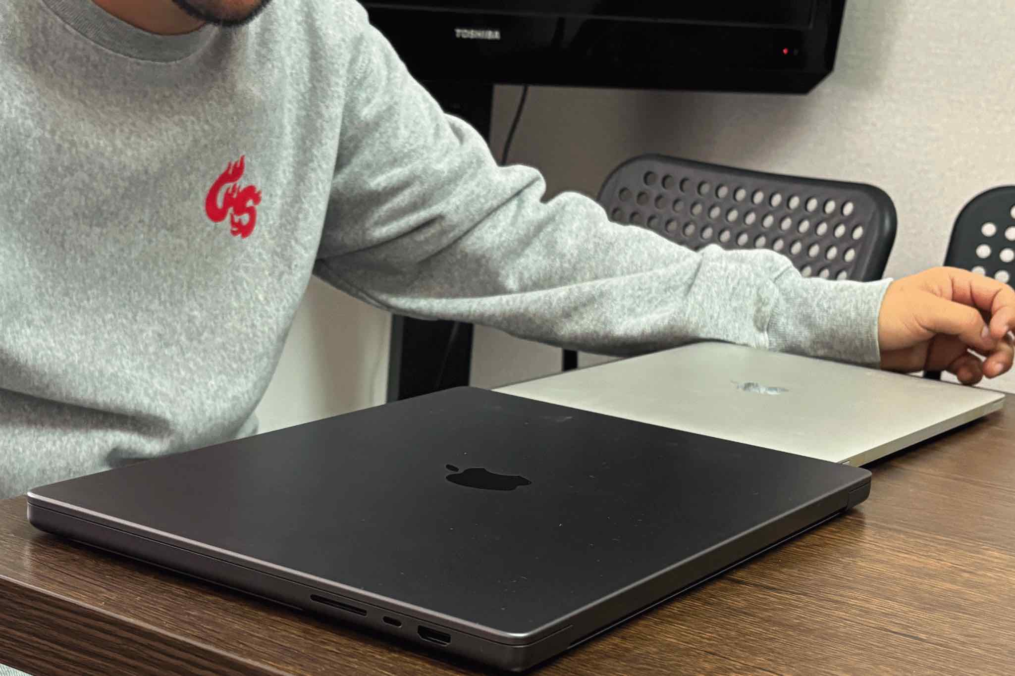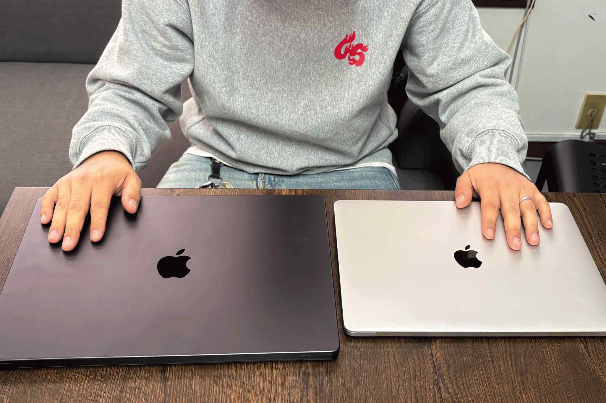 デザイン用のPCとDJ用のPCで分けています。もともとは全部1台でやってたんですけど、ハードが古くなってくるとグラフィックデザインのソフトに対応しづらくなるんですよ。何回も買い替えるのも大変やし、今は使い分けています。DJの方はある程度の容量とスペックがあれば良いんですが、デザイン用は、M4 MaxというMac Book Proの中でもとびきり良いチップが入ったハイスペックなPCを使っています。