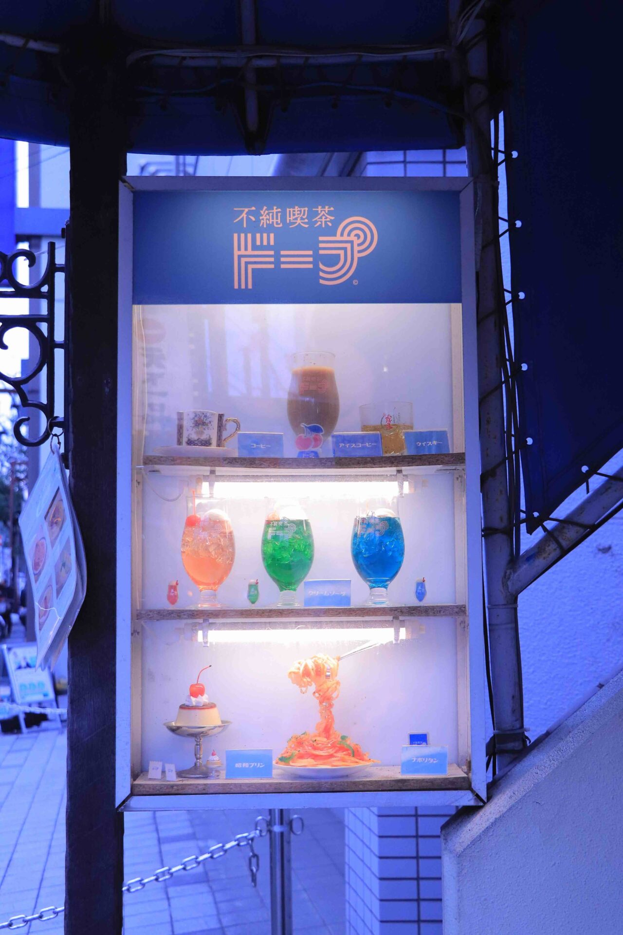 長年使われていた喫茶店を居抜きで使っているお店なんですが、いわゆる純喫茶の定番メニューにアルコール、つまり不純物を加えているのが最大の特徴です。例えばクリームソーダやパフェにウイスキーとかテキーラをぶっかけたり笑